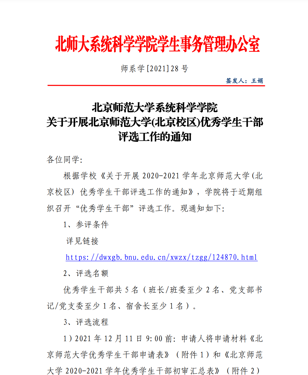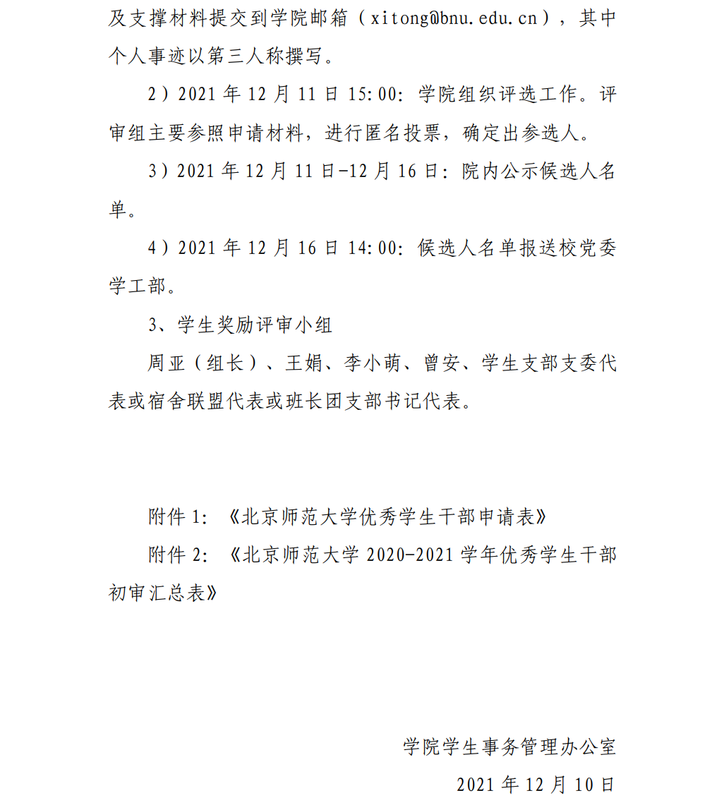 附件2:《北京师范大学2020-2021学年优秀学生干部 初审汇总表》