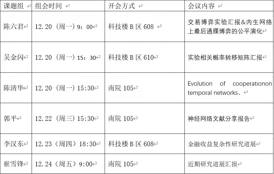本周组会汇总信息如下: