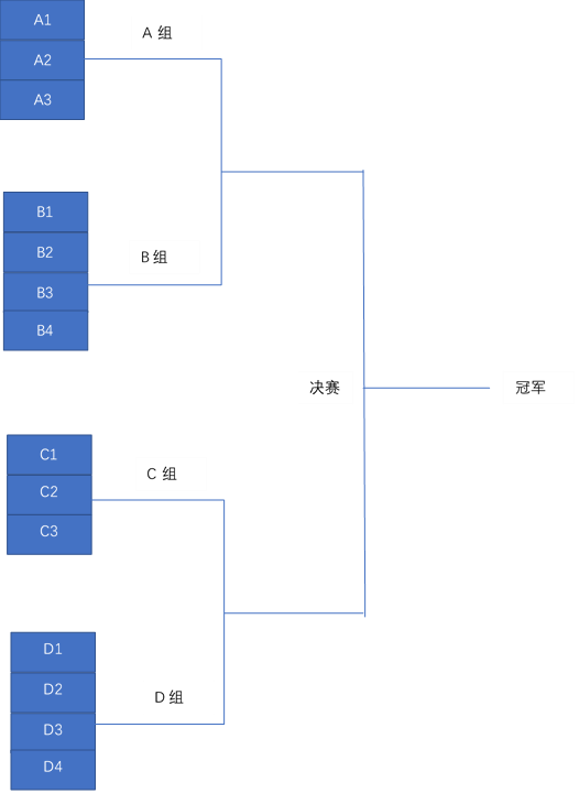 本次比赛共两轮,分为小组循环赛和冠亚军排位赛。