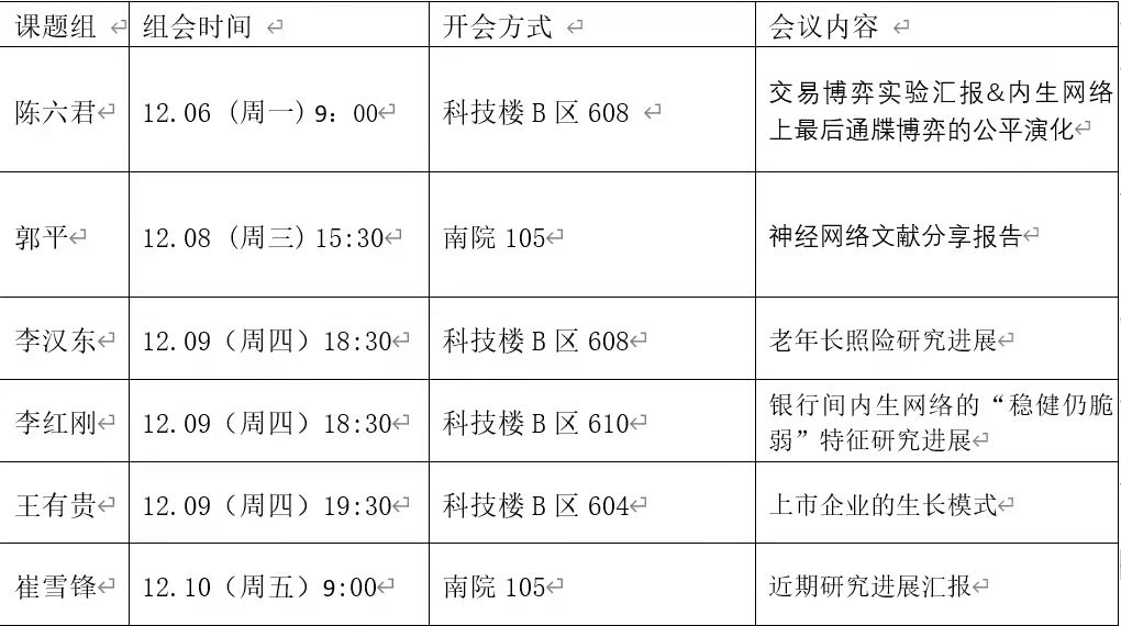 本周组会汇总信息如下: