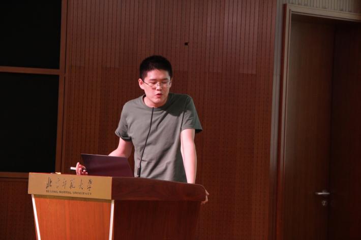 北京师范大学系统科学学院2019级硕士生赵子鸣作题目为《The Use of A Matching Preference Index to Empirically Examine Distribution Imbalances in Beijing Citizens’ Names》的报告,报告中提出一个创新的量化方法揭示了真实姓名和统计上显著差异,发现中国人的取名存在潜在的文化偏好。随后大家就姓名偏好在研究中是否有意义展开讨论。