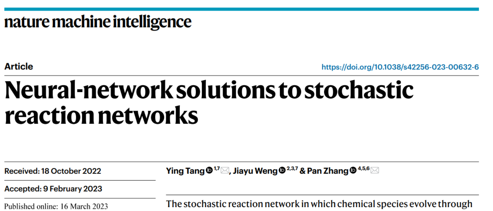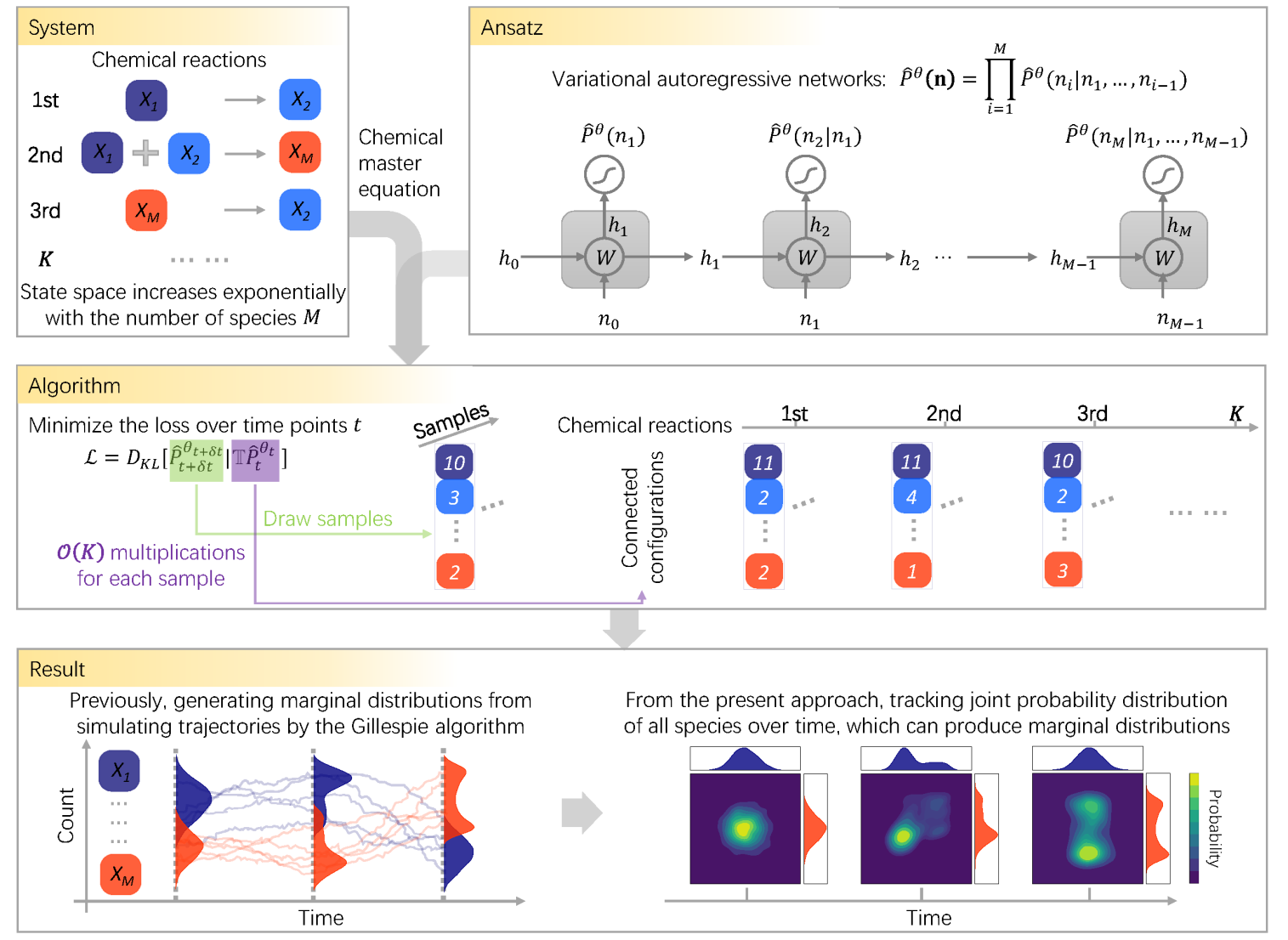 3月16日,北京师范大学系统科学学科,联合中科院理论物理所的合作者,在Nature Machine Intelligence(自然-机器智能)发表论文Neural-network solutions to stochastic reaction networks,提出了一种使用变分自回归网络来求解化学主方程的机器学习普适方法。