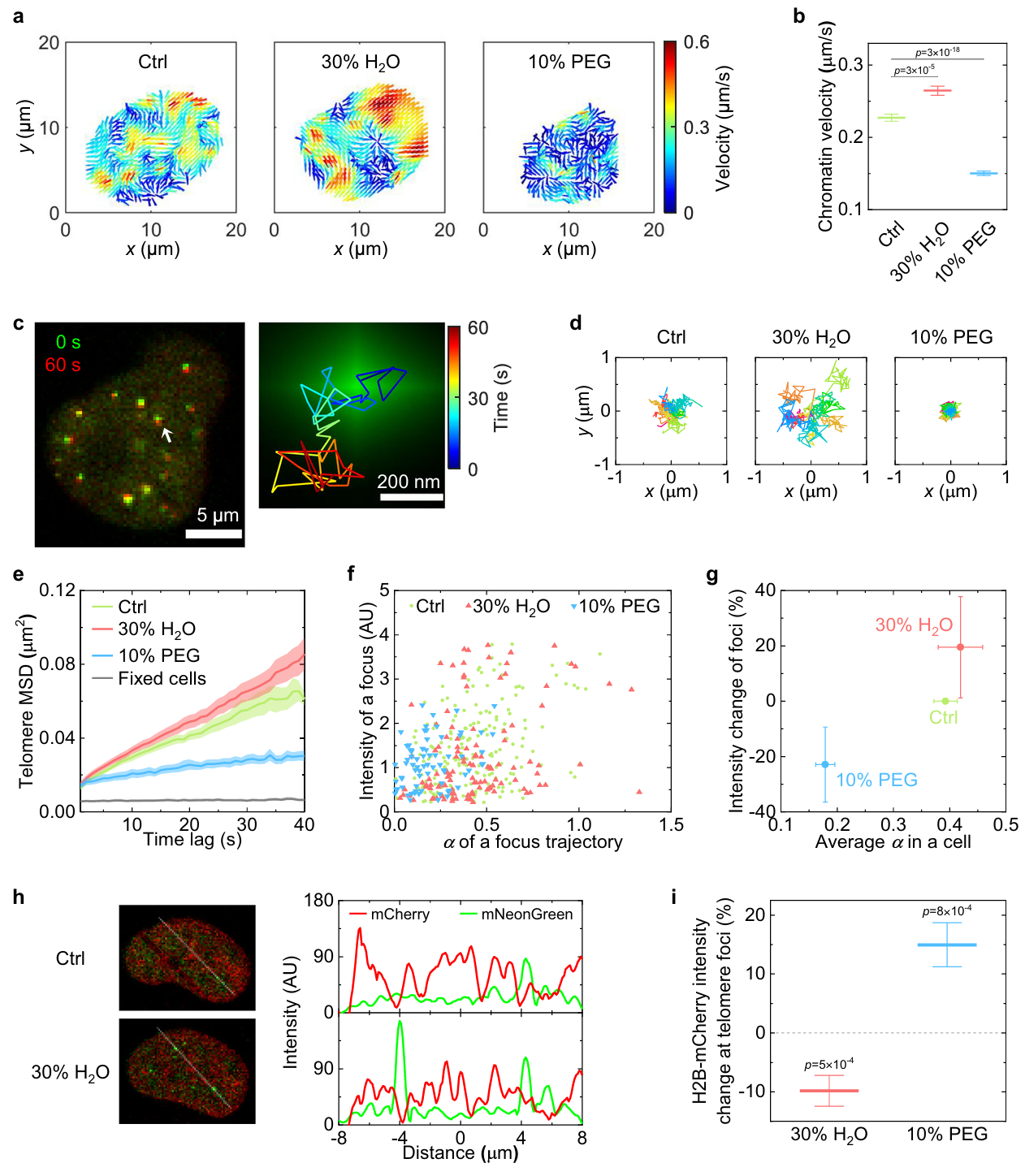 图3. 渗透压通过改变核内拥挤度及动力学,进而调控DNA标记和基因转录