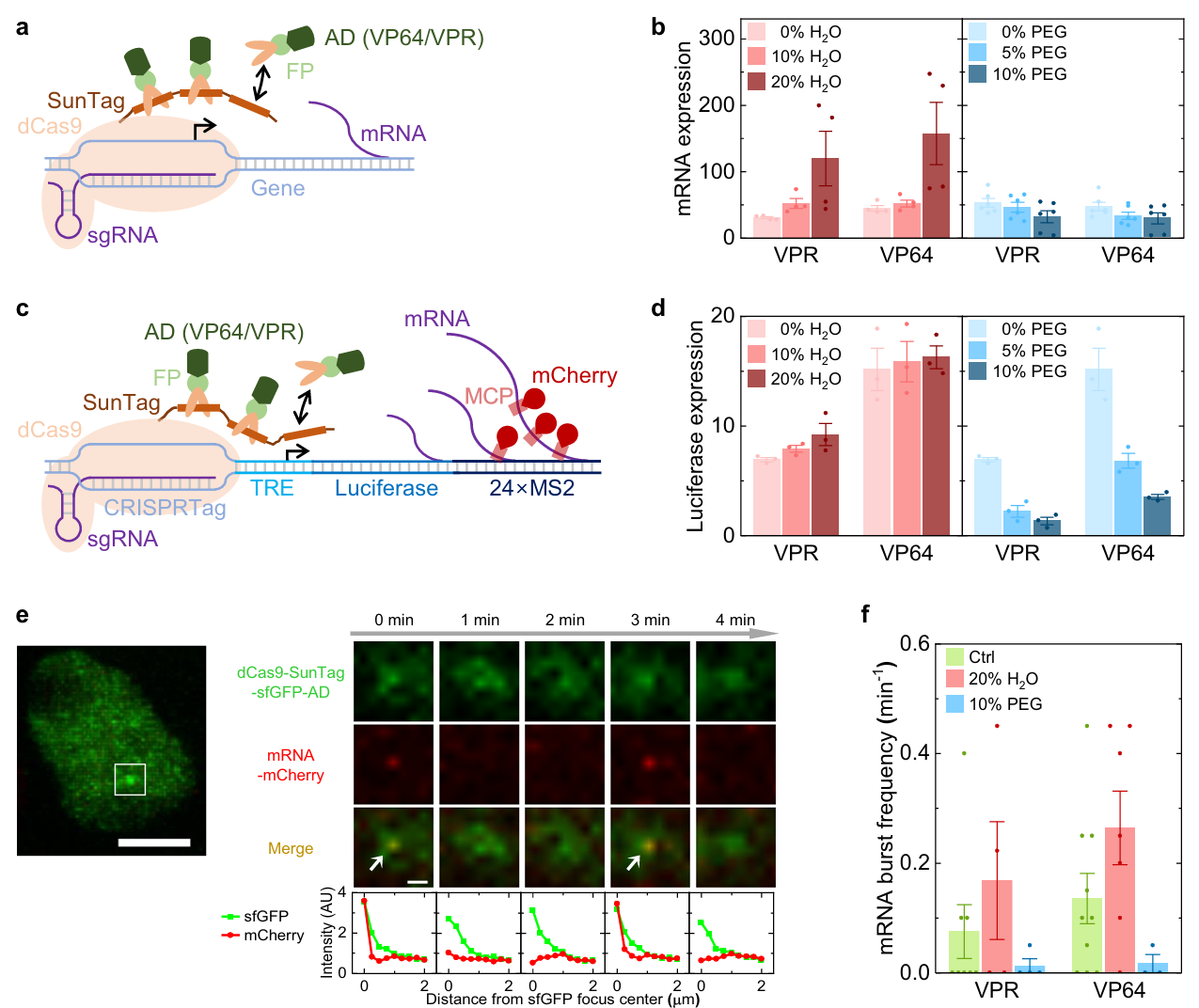这项工作不仅揭示了胞外渗透压作为一种关键物理量,如何影响细胞核内基因行为的物理机制,更确立了dCas9-SunTag系统作为一种能够原位感知核内局域拥挤度的新型探针,为精准调控基因表达及探测细胞核对外界环境的动态响应提供了全新策略。