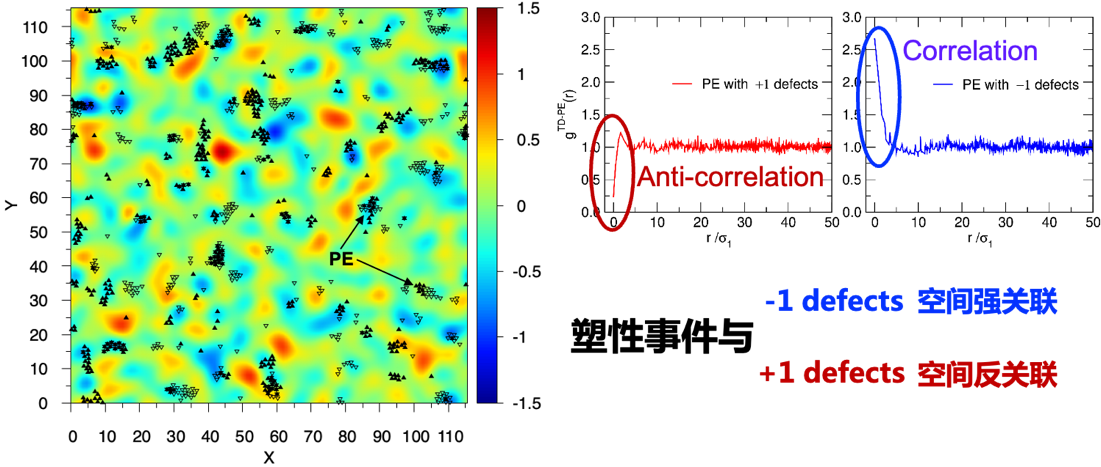 图2 拓扑缺陷(TD)与塑性事件(PE)空间位置上的关联