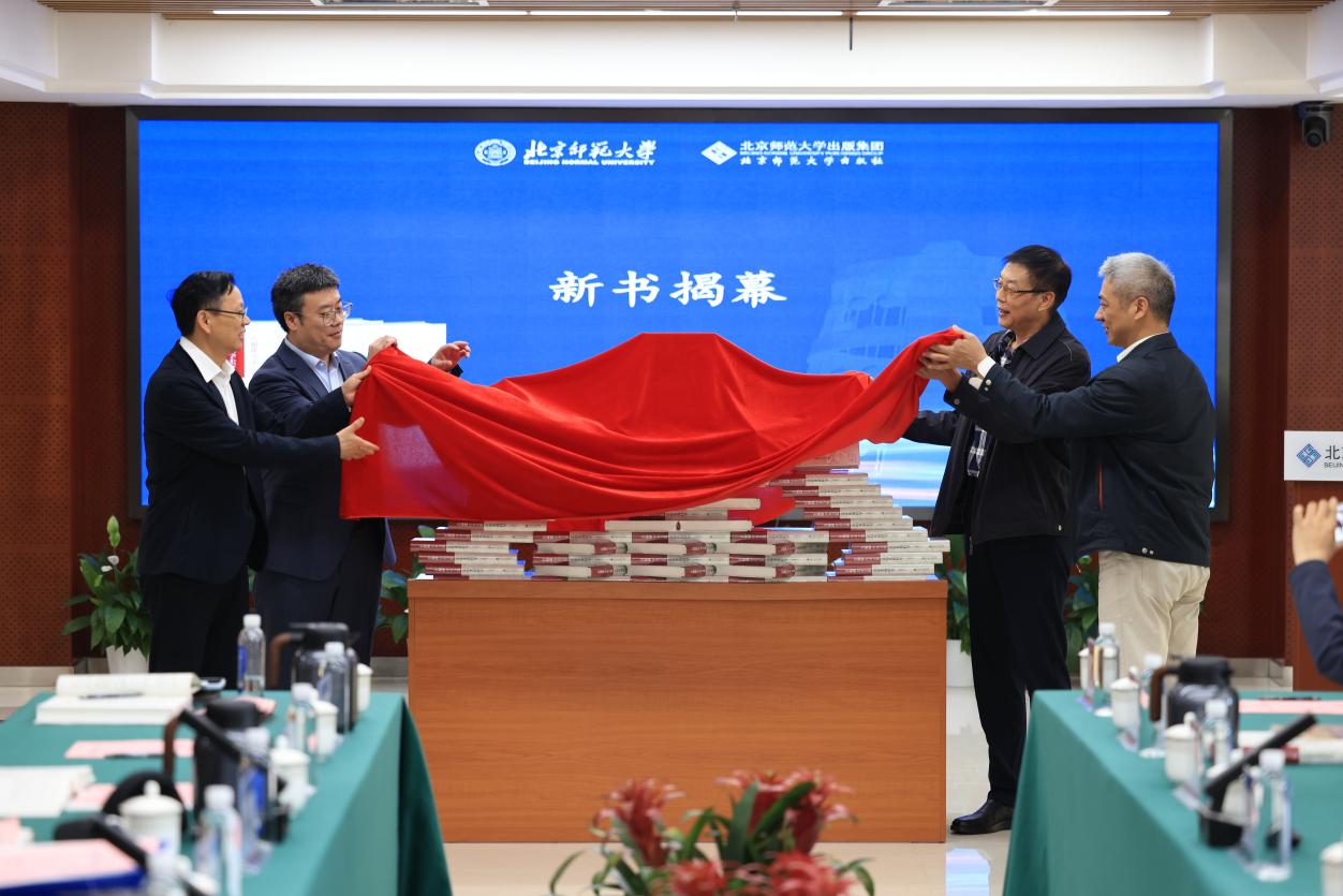 在新书揭幕仪式上,北京师范大学系统科学学院党委书记王大辉教授、院长樊京芳教授、北京师范大学出版集团党委书记、董事长朱生营先生以及系统科学学院狄增如教授共同为《方福康学术文集:走向系统科学》一书揭幕。