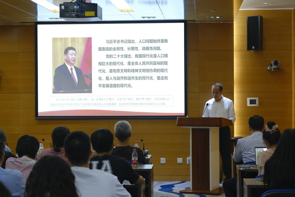 为深入学习贯彻习近平新时代中国特色社会主义思想,系统科学学院对标学校主题教育总体要求,坚持主题教育与学院高质量发展相结合。5月8日下午学院邀请第十三届全国政协人口资源环境委员会副主任、中国计划生育协会常务副会长王培安,开展了主题为“为实现中华民族伟大复兴创造良好人口环境”的主题教育专家讲座培训。讲座由系统科学学院院长陈晓松主持,共有50余名师生参加。