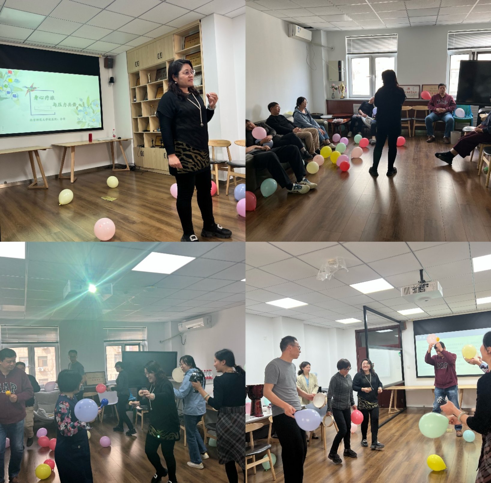 为有效缓解教职工身心压力,提升压力和情绪管理能力,让老师们更愉快地工作、更幸福地生活,学院工会特邀校医院高级健康管理师余倩大夫,于4月19日在科技楼B区604联合举办“身心旅疗--如何与压力共舞”的团体活动。本次活动内容丰富、形式多样,为大家提供了一场愉悦身心的压力疏解之旅。