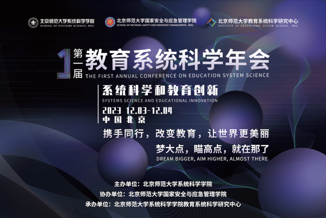 2023年12月2日至4日,由北京师范大学系统科学学院主办、北京师范大学国家安全与应急管理学院协办、北京师范大学系统科学学院教育系统科学研究中心承办的“第一届教育系统科学年会(2023)”在北京辽宁饭店召开。120位来自教育实践、教育研究、系统科学、具体学科的教育研究、大中小学教育教学、教育管理以及科学学专家出席会议。同时会议全程直播,累计约20000人在线参会。