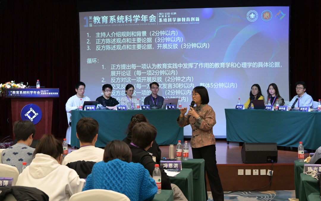 下午的杏坛论剑,由北京师范大学系统科学学院教育系统科学研究中心吴金闪主持,展开了“是否有在教育实践中发挥了超越正确的废话的教育学和心理学”的辩论活动,通过极端的正反对立辩论,找出有在教育实践中发挥作用的教育学和心理学的概念、思想、工具。中国教育学会秦建平、北京师范大学朝阳附属学校蒋立红和上海杰其企业管理咨询事务所张婴文对辩论做了细致的点评和指导。