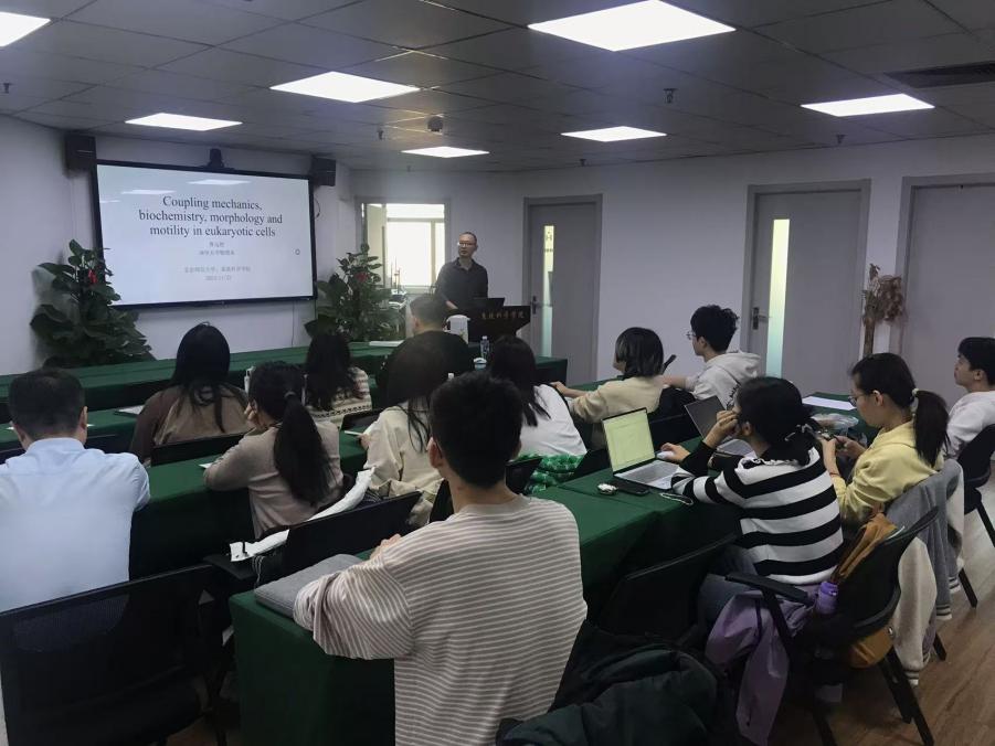2024年11月22日下午2点,清华大学物理系助理教授曹远胜应邀在系统科学学院举办了一场题为“真核细胞中的力学、化学、形态与运动的耦合”的学术报告。曹远胜教授2011年本科毕业于北京大学,2016年于北京大学物理学院获得博士学位,随后在美国加州大学圣迭戈分校从事博士后研究,现任清华大学物理系助理教授。他长期致力于物理学与生物学交叉领域的研究,探索基本物理规律如何限制与增强生物功能,在分子机器、信号处理和细胞运动等方向取得了重要进展,相关成果对理解生命系统的物理本质具有重要意义。