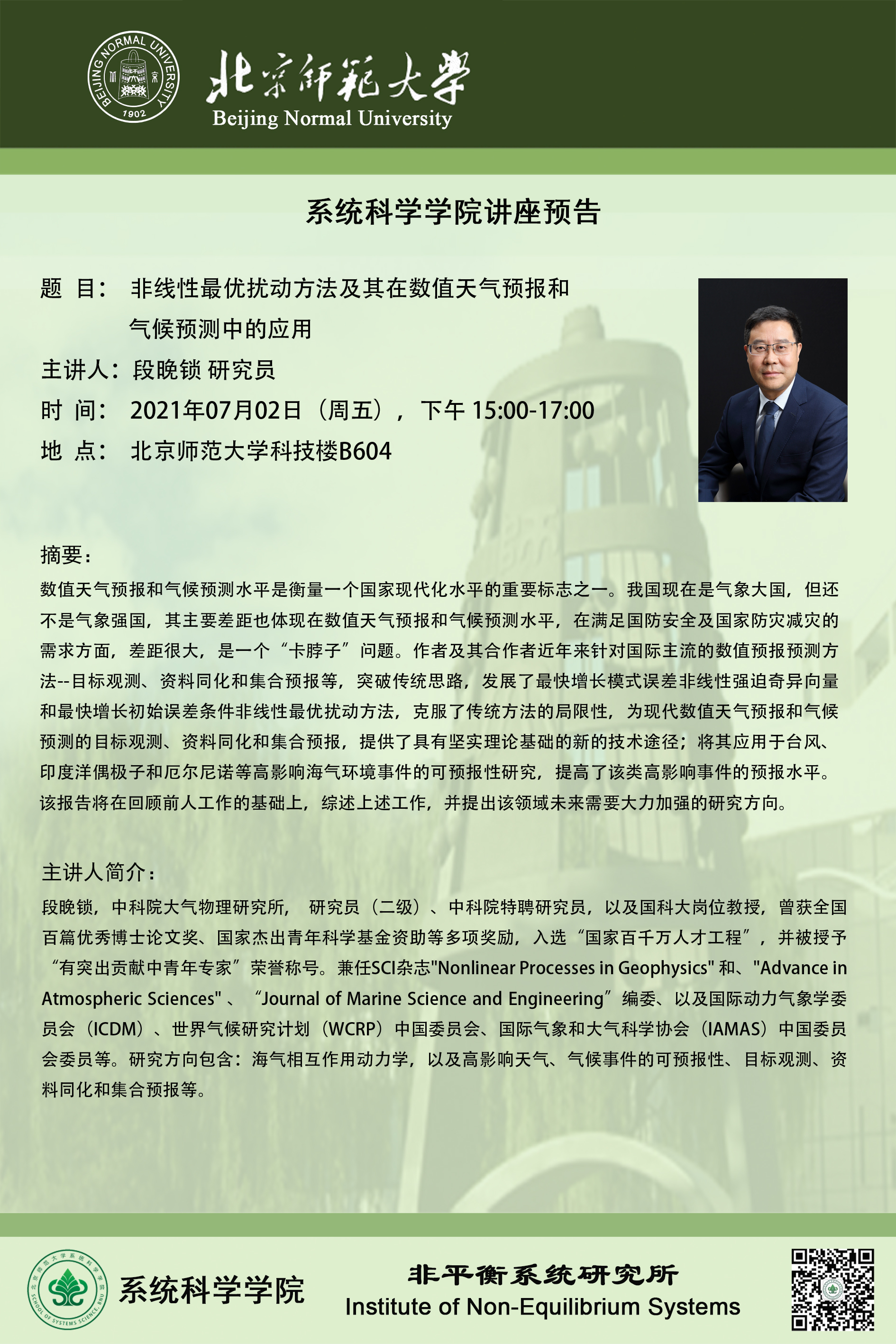 【讲座】非线性最优扰动方法及其在数值天气预报和气候预测中的应用