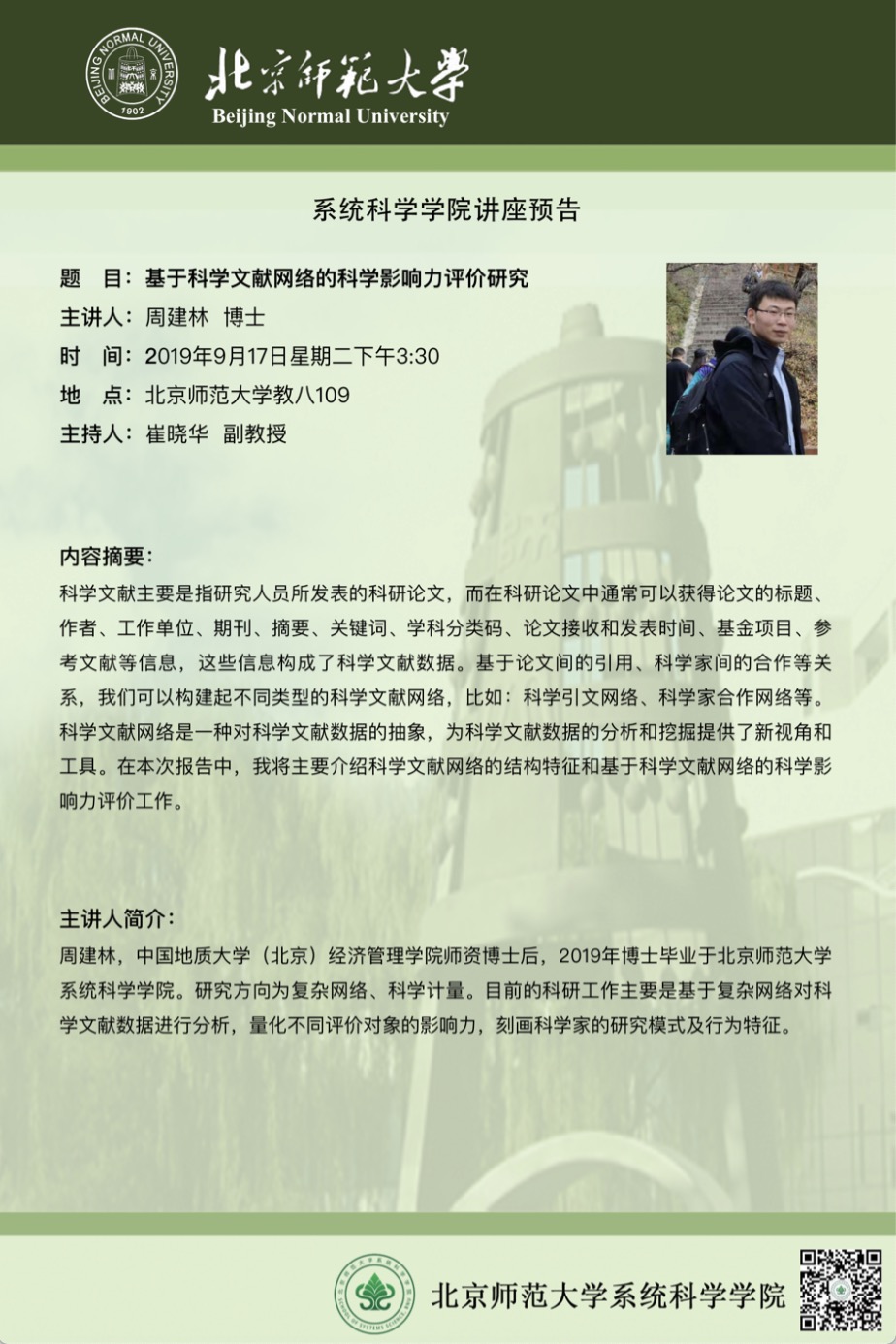 [讲座] 基于科学文献网络的科学影响力评价研究
