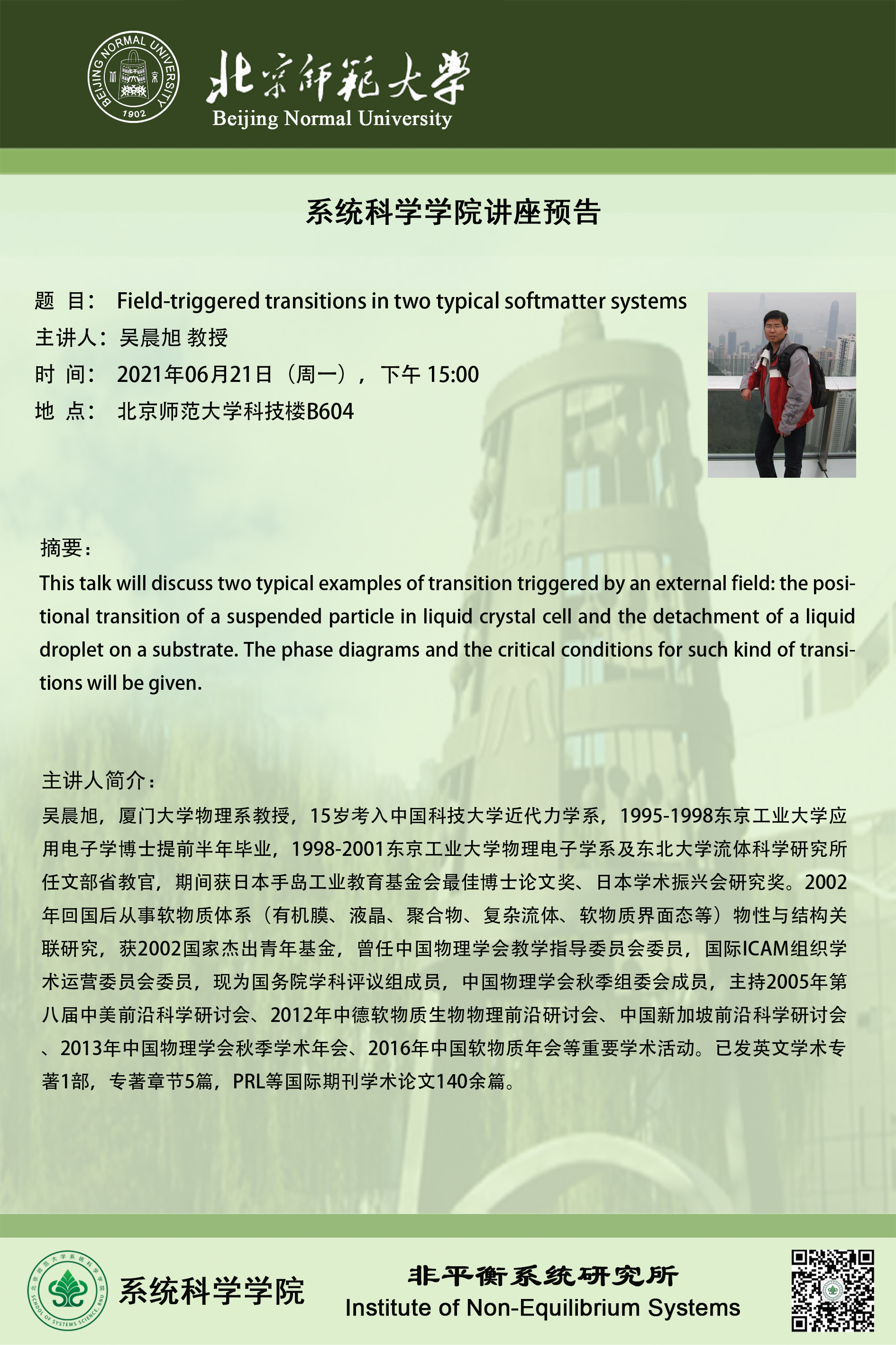 【讲座】Field-triggered transitions in two typical softmatter systems