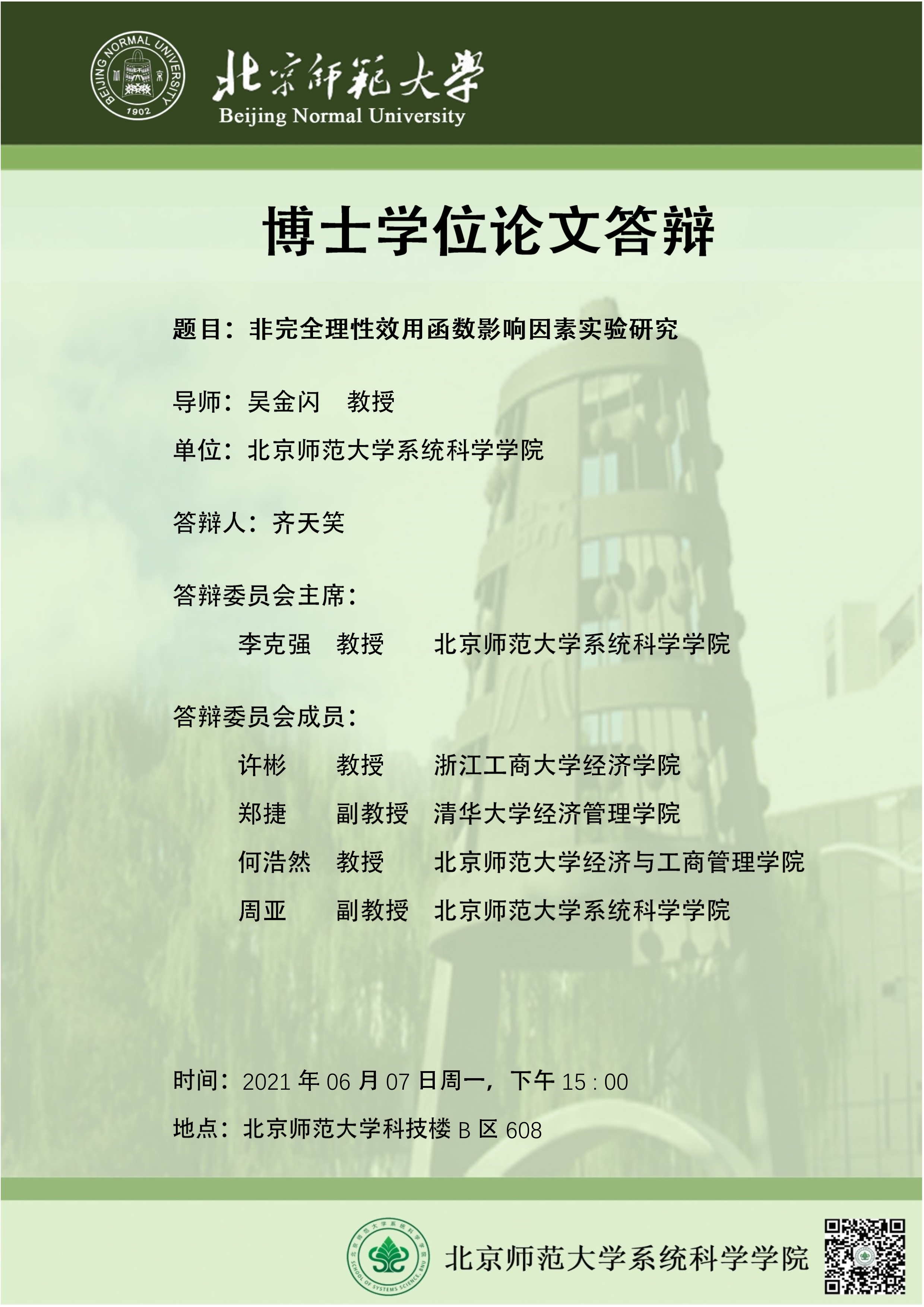 【答辩】非完全理性效用函数影响因素实验研究