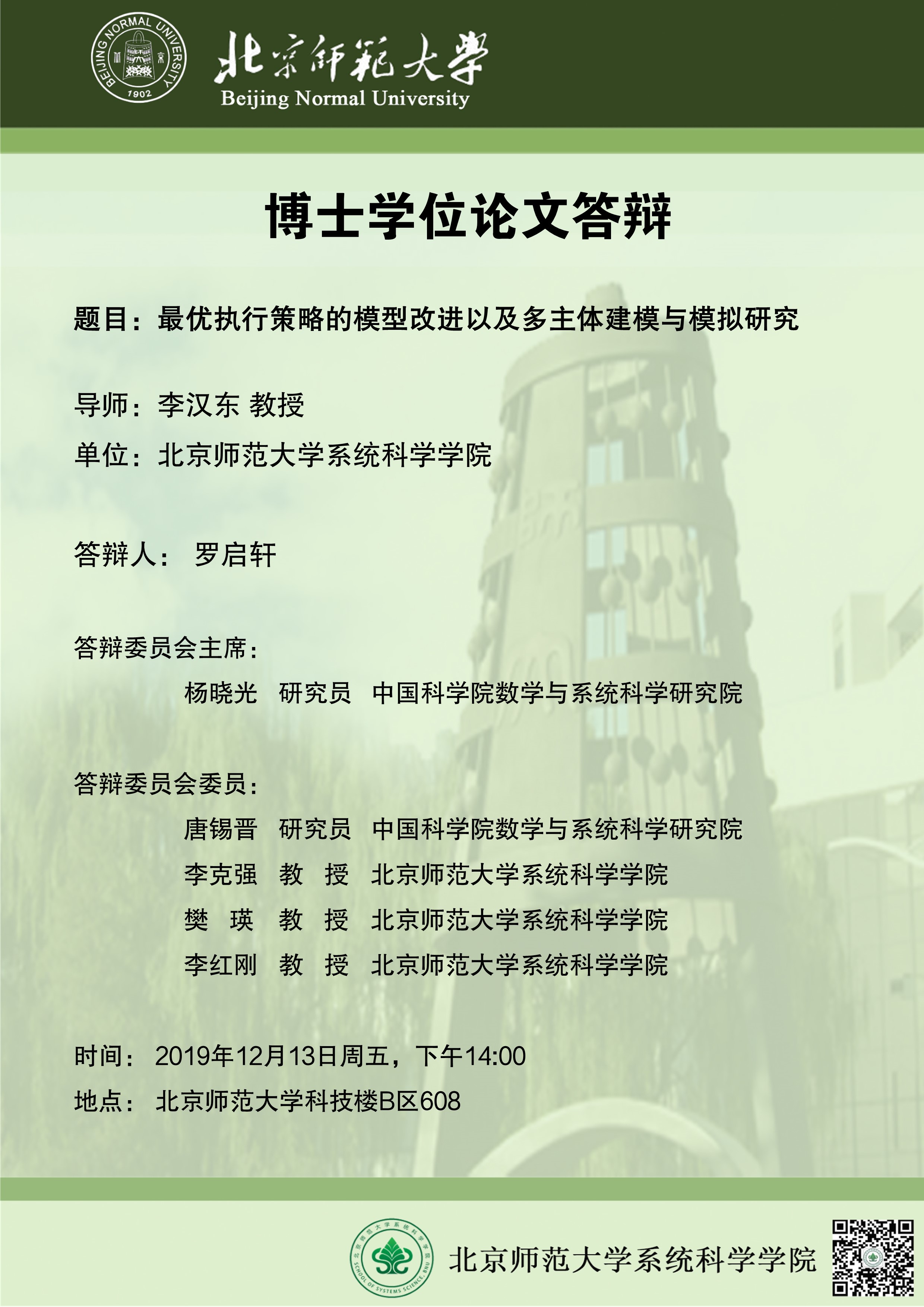 [答辩] 最优执行策略的模型改进以及多主体建模与模拟研究