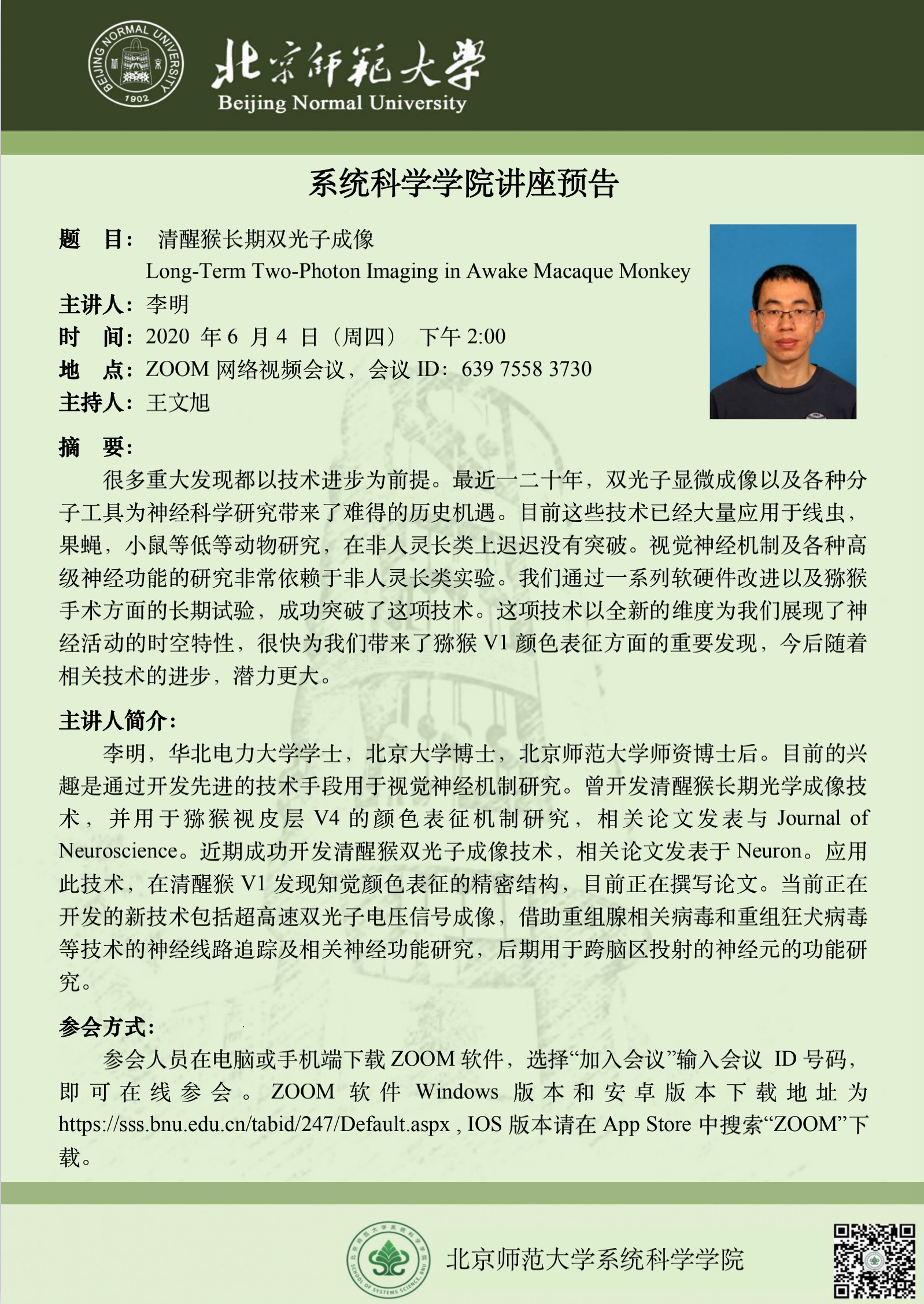 【讲座】清醒猴长期双光子成像