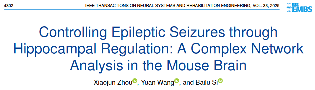 近日,北京师范大学系统科学学院斯白露教授团队在IEEE旗下国际期刊《IEEE Transactions on Neural Systems and Rehabilitation Engineering》(JCR一区,影响因子5.7)上发表题为:Controlling Epileptic Seizures through Hippocampal Regulation: A Complex Network Analysis in the Mouse Brain的研究论文。该成果由北京师范大学研究生周骁俊(已毕业)为第一作者,北京师范大学博士后王媛为通讯作者。
