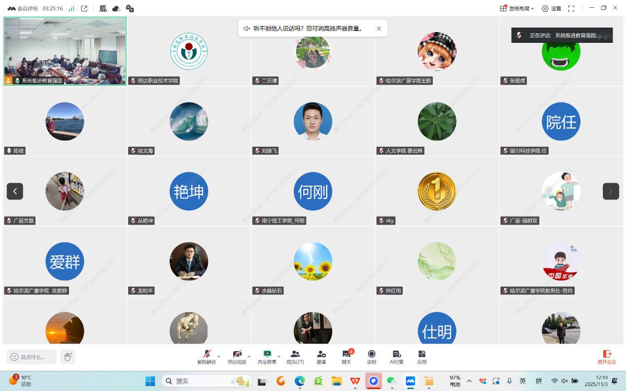 2025年11月3日,由系统科学学院及数字学习与教育公共服务教育部工程研究中心教育系统工程委员会联合主办的“系统推进中国式现代化教育强国”系列讨论第一次活动正式开启,系统科学学院王大辉教授和数字学习与教育公共服务教育部工程研究中心副主任李玉顺教授出席了本次讨论。来自校内外共75名专家学者参与了本次讨论,其中28人线下参加,47名通过腾讯会议线上参加。