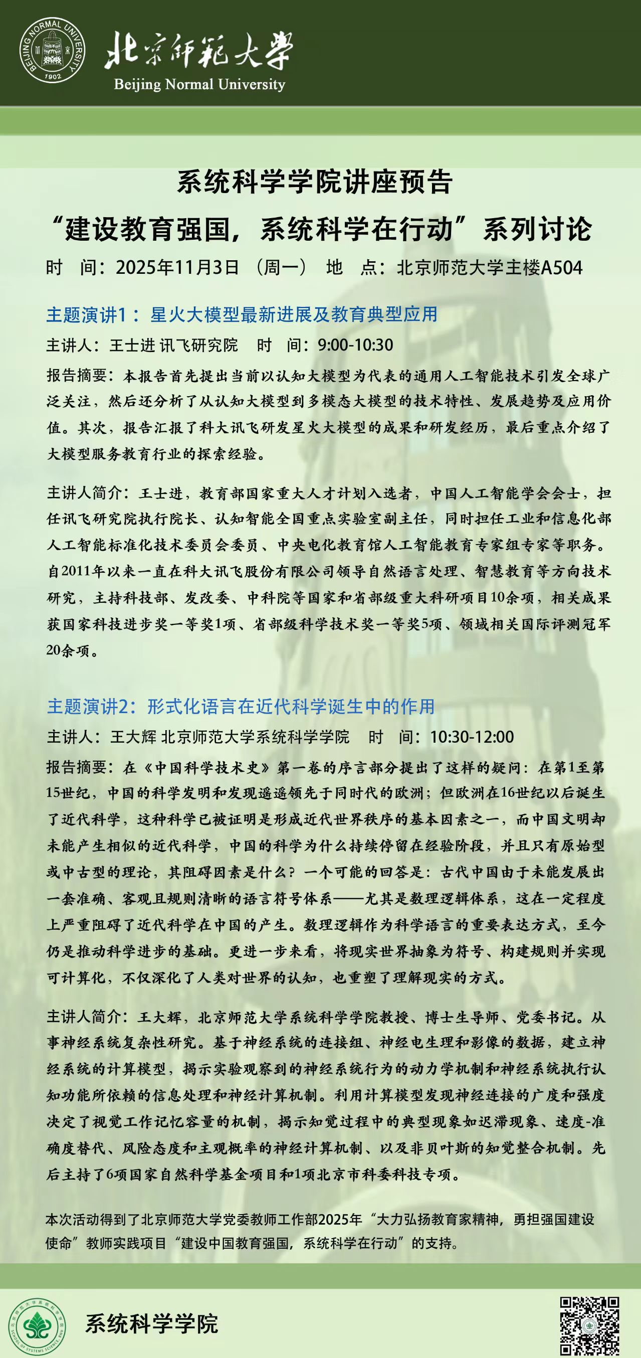 本次活动得到了北京师范大学党委教师工作部2025年“大力弘扬教育家精神,勇担强国建设使命”教师实践项目“建设中国教育强国,系统科学在行动”的支持。